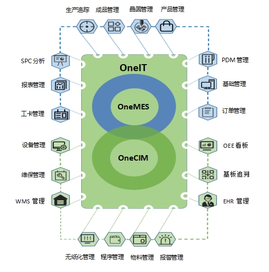 OneMES是一套针对离散制造企业实现精益化生产的本土化平台,通过对ERP订单下达到车间生产作业的整个生产过程管控,为企业提供生产调度、过程监控、数据采集、质量、时效、防呆控制等生产过程管理,达到生产数据透明化和提高生产效率、节省生产成本的目的。华芯智联凭借丰富的实施经验和专业的开发实施团队,为企业提供标准套件或定制化服务,助力企业实现一体化、透明化、实时化的ERP/MES/CIM信息管理体系